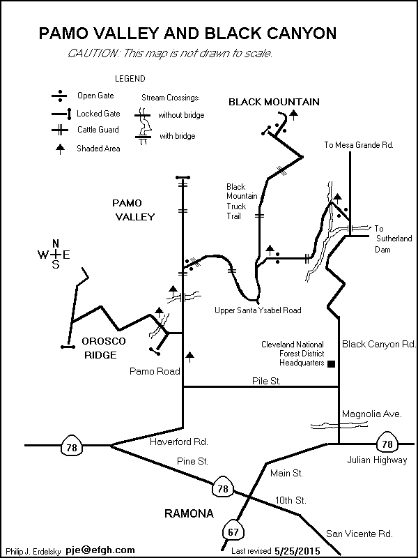 - 04.7 - Pass the entrance to Orosco Truck Trail on the left. Pamo Road