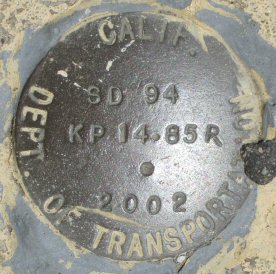 | Name: SD94 KP14.85R Identifier: Lat/Lon: N 32° 44.816 W 117° 1.615 Elevation: 480 FEET Year: 2002 Address: 3754 GROVE ST, LEMON GROVE CA 91945 Vicinity: click here Survey Date: 5/10/2014 Description: click here |